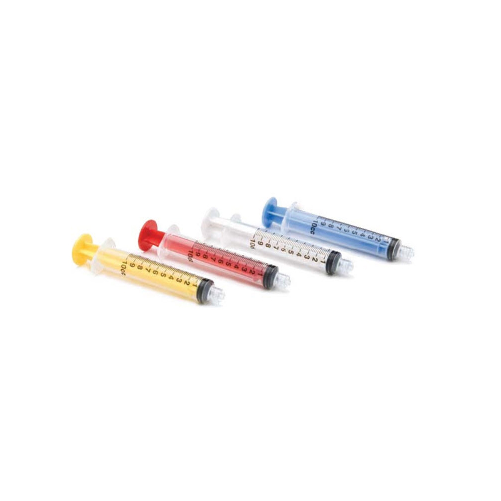 Farvede skyllesprøjter hjælper med at adskille skyllevæskerne fra hinanden. Latexfri, usterile og med luer-lock. Fås i 5ml eller 10ml i farverne blå, gul, rød og hvid.