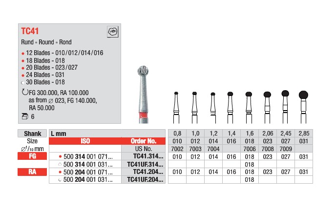 Finerbor med 20 skæreflader. Til vinkelstykke/RA. længde: 2,06 mm.