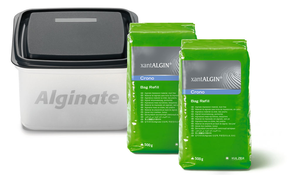 Hurtigt afbindende, støvfri alginat. 3 farveskift under hærdning.( Fra blå til lilla og pink ) Arbejdstid: 1,15min. Total hærdetid 2,15min.
