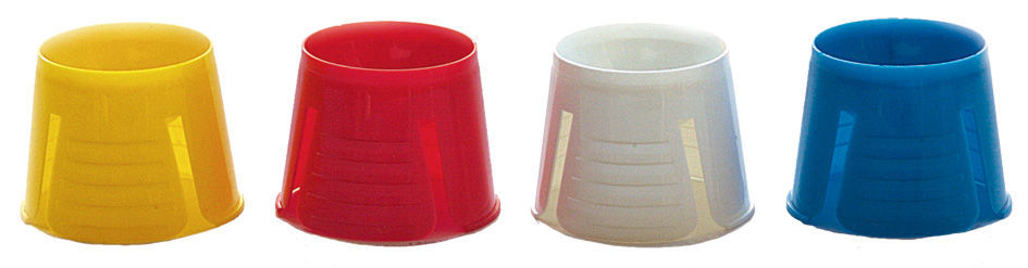 Dappenbægre i plast med flige til fastsætning på bakkekant.