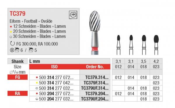 Finerbor med 20 skæreflader. Til turbinen/FG. længde: 4,2 mm.
