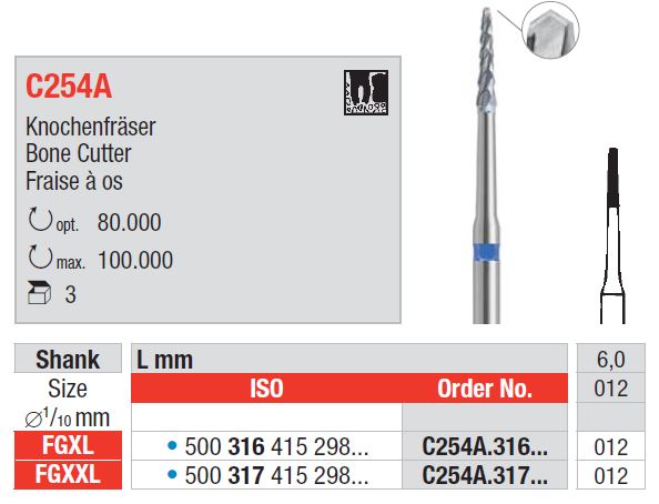 Edenta knoglefræser blå C254A GFXL 012