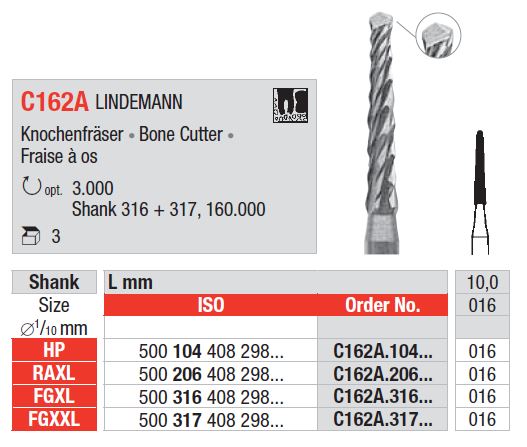 Edenta Lindemann knoglefræser HM C162A FGXL 016