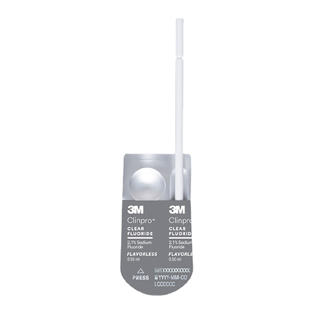 Vandbasseret og klæbefri natriumfluoridopløsning på 2,1%, men med samme fluoridoptagelse som en traditionel 5% lak. Ref: 7100313708 Fuld effekt efter 15 min, behagelig smag og klar i farven. Brugervenlig emballage og nem at påføre.
