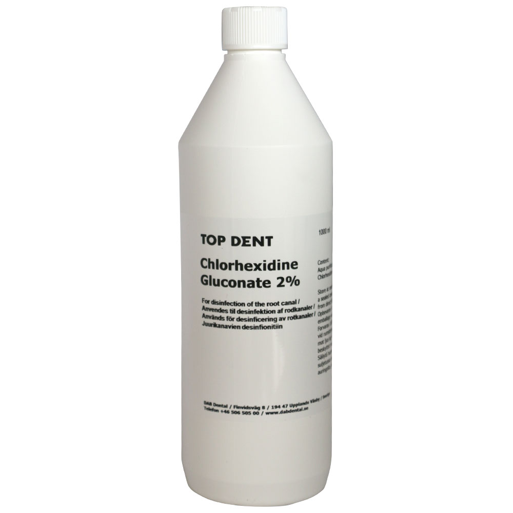 Anvendes til desinfektion samt genfugtning af præparationsflade, før dentinbinding. Eller som korttidsdesinficerende indlæg i rodkanalen. OBS: Anvend EDTA eller citronsyre til neutralisering mellem skylningerne af natriumhypochlorit og klorhexidin!